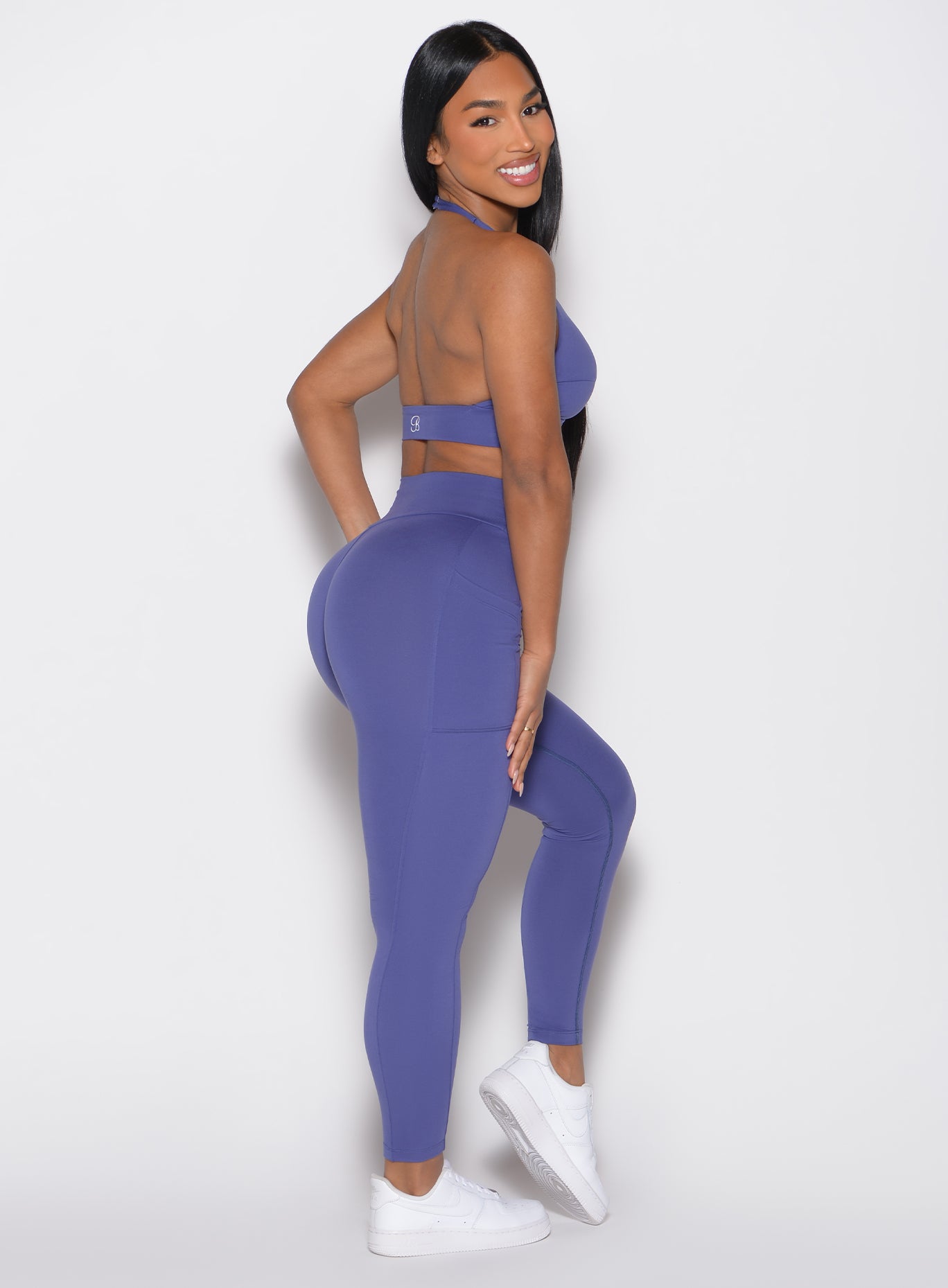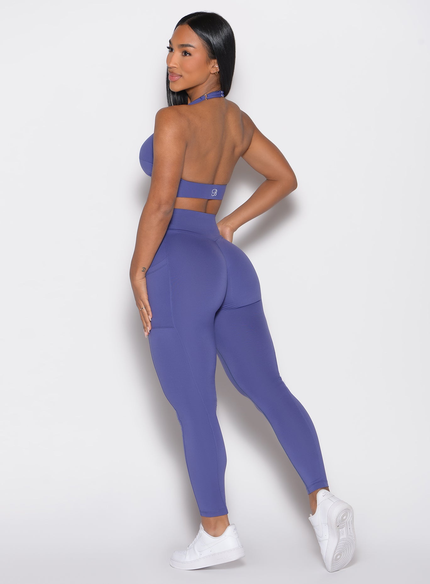 We took your favorite figure-flattering style and gave it a bold refresh. the Sculpt Knot Leggings in Future Dusk. With a standout front knot detail and a contouring V-cut waistband. these leggings sculpt your waist and amplify your shape from every angle. Side pockets add function. while the tailored silhouette keeps things sleek. Built for performance and made to flex. these leggings move when you do. Style them with the Backless Knot Bra in Future Dusk for the full Bombshell effect.