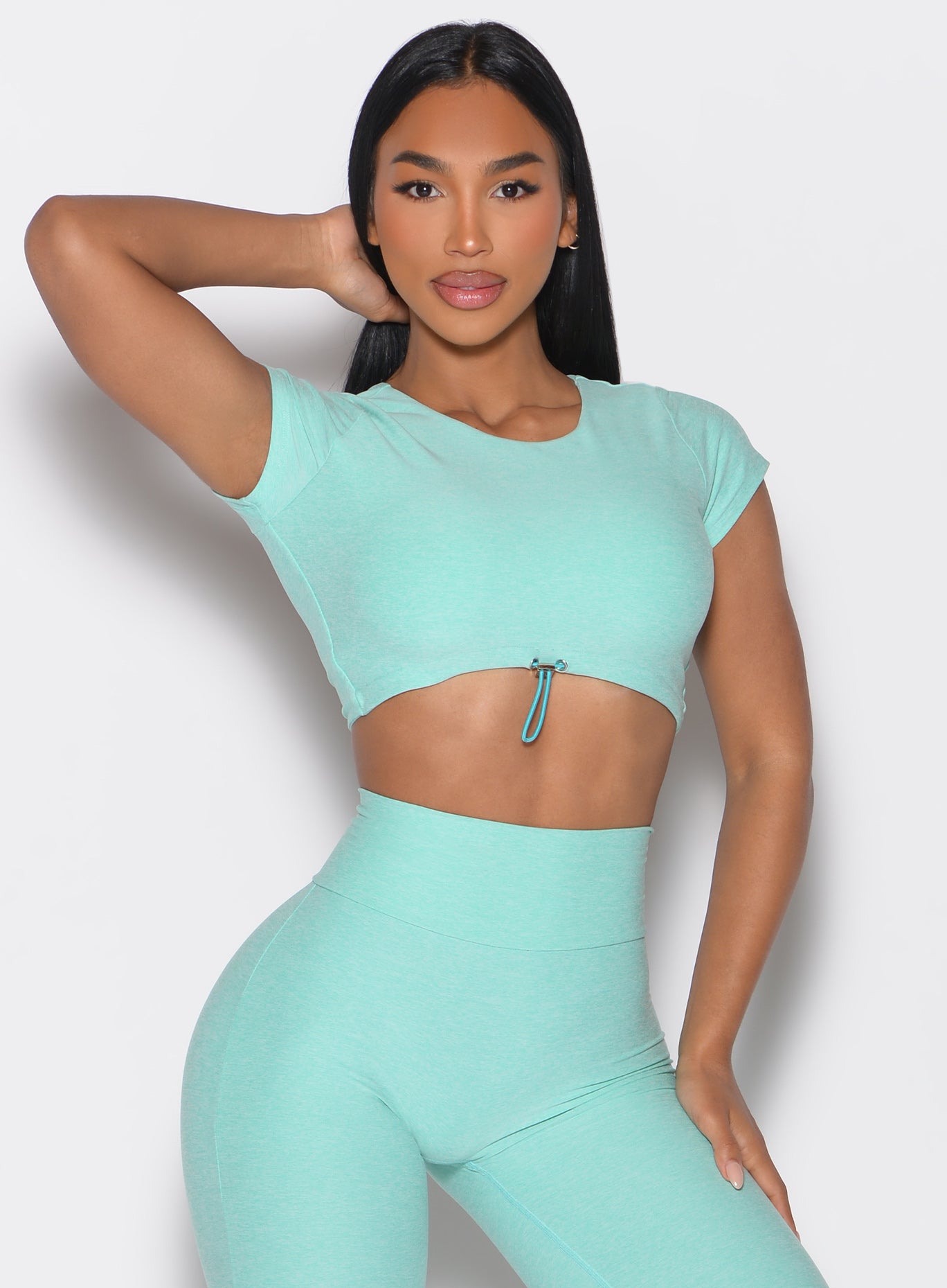 This ultra-flattering toggle-front cropped top is the ultimate gym-to-street essential. Designed with a statement open-back and sleek hardware detail. it features an adjustable toggle under the bust. allowing you to customize the fit for optimal comfort and versatility. The double-layered front offers extra support. ensuring you feel secure and confident during every workout or daily adventure. Whether you’re breaking a sweat or elevating your activewear style. this top is a must-have for a bold and effortless look!